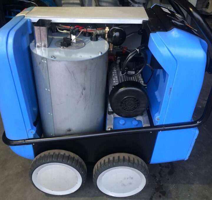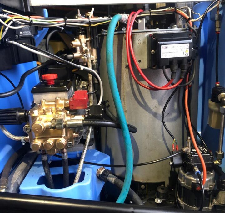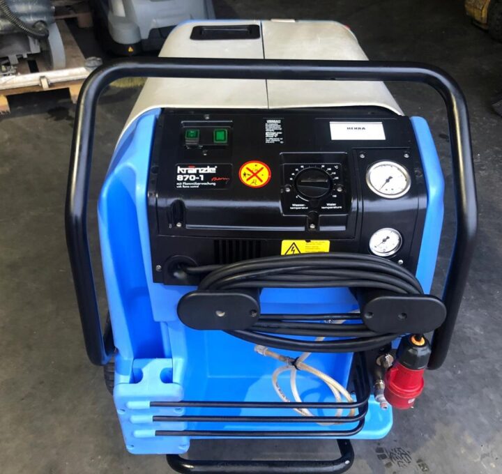 Używana myjka wysoko ciśnieniowa ciepłowodna renomowanej firmy KRANZLE THERM 870-1. Maszyna po kapitalnym remoncie pompy i kotła. Myjka z 2010r ale w idealnym stanie technicznym i wizualnym jak nowa z gw 6 m sprzedającego. Model ten charakteryzuje się bardzo cichą kulturą pracy solidną wytrzymałą pompą z porcelitowymi tłokami i mocnym wolno obrotowym silnikiem. Myjka przemysłowa przeznaczona do wielogodzinnych prac codziennych w przemyśle spożywczym, ubojnie, masarnie, zakłady mięsne, firmy transportowe